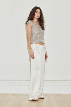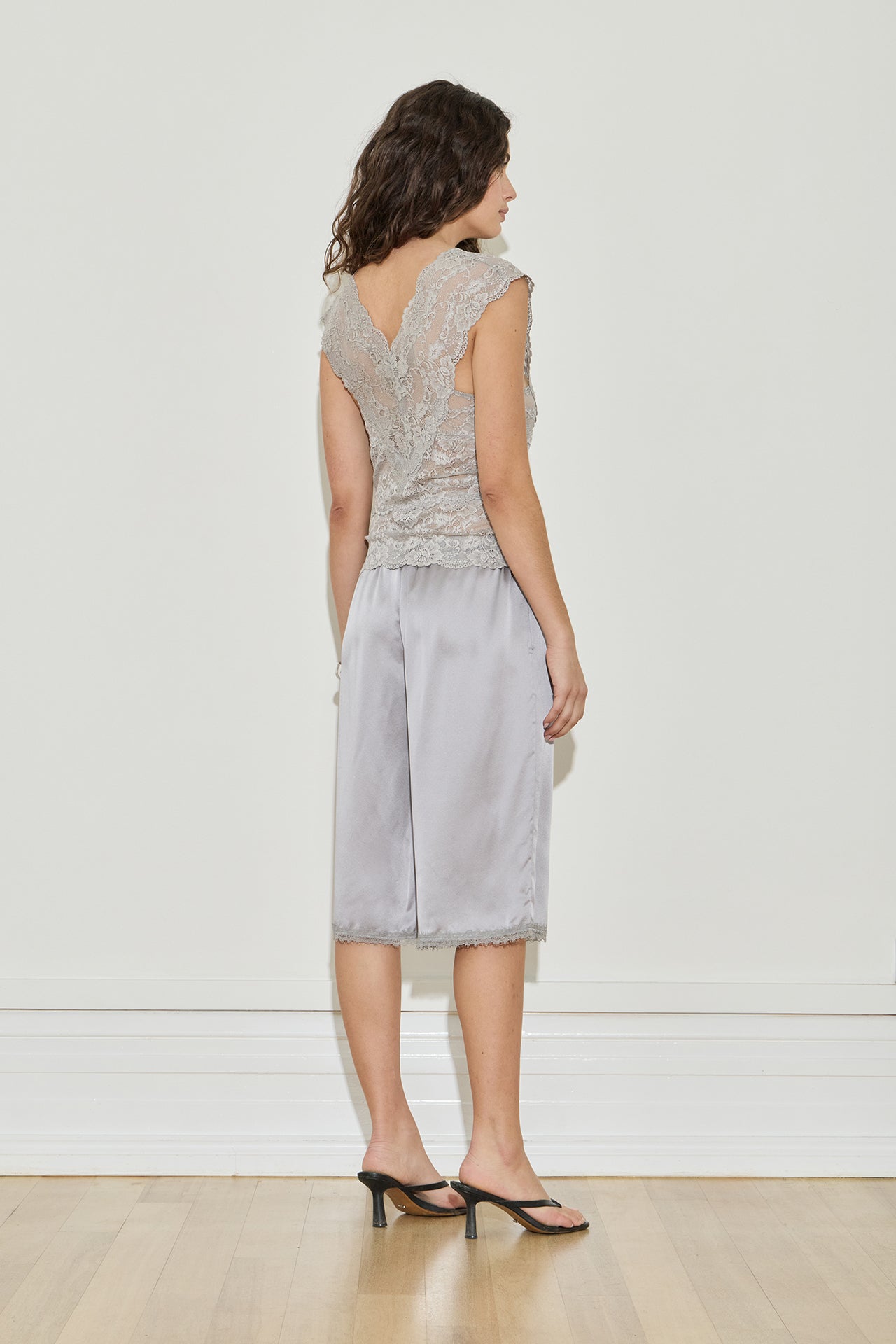 Designed to flatter the silhouette, the Lace Top is crafted from delicate semi-sheer lace with intricate panelling. A V-neckline and scalloped lace edges at the neckline and hem complete the look