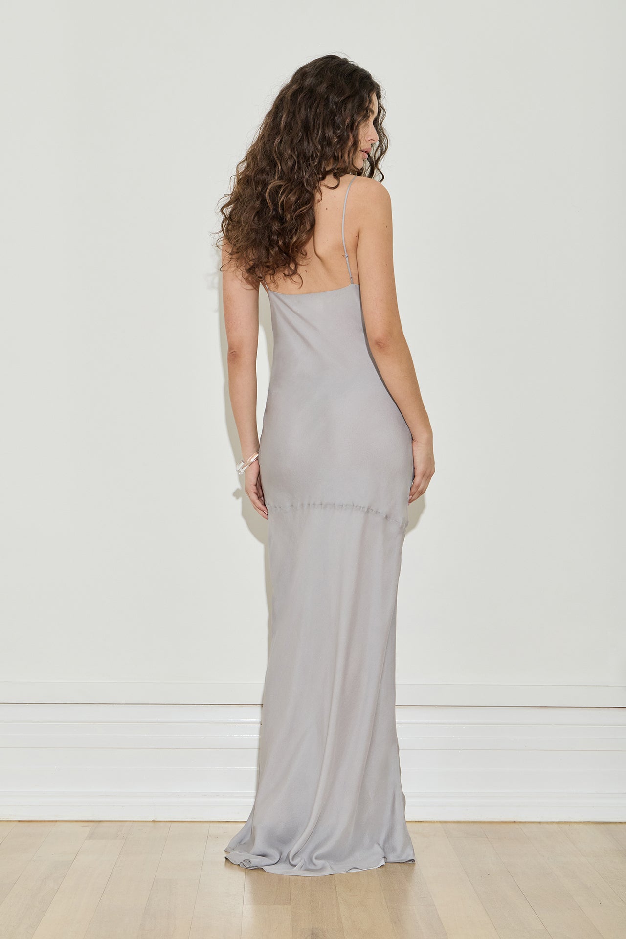 Cut on the bias in a semi-sheer silk chiffon, our Silk Chiffon Slip features asymmetrical seam details and a fluid drape.