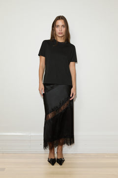 The latest update on our best selling slip: the 90s It Girl Midi, featuring tie up spaghetti straps and an asymmetric lace trim hemline. This elegant slip skims the body falling to a midi length. Style back with a pair of heels for a polished finish or sandals for a more relaxed look.