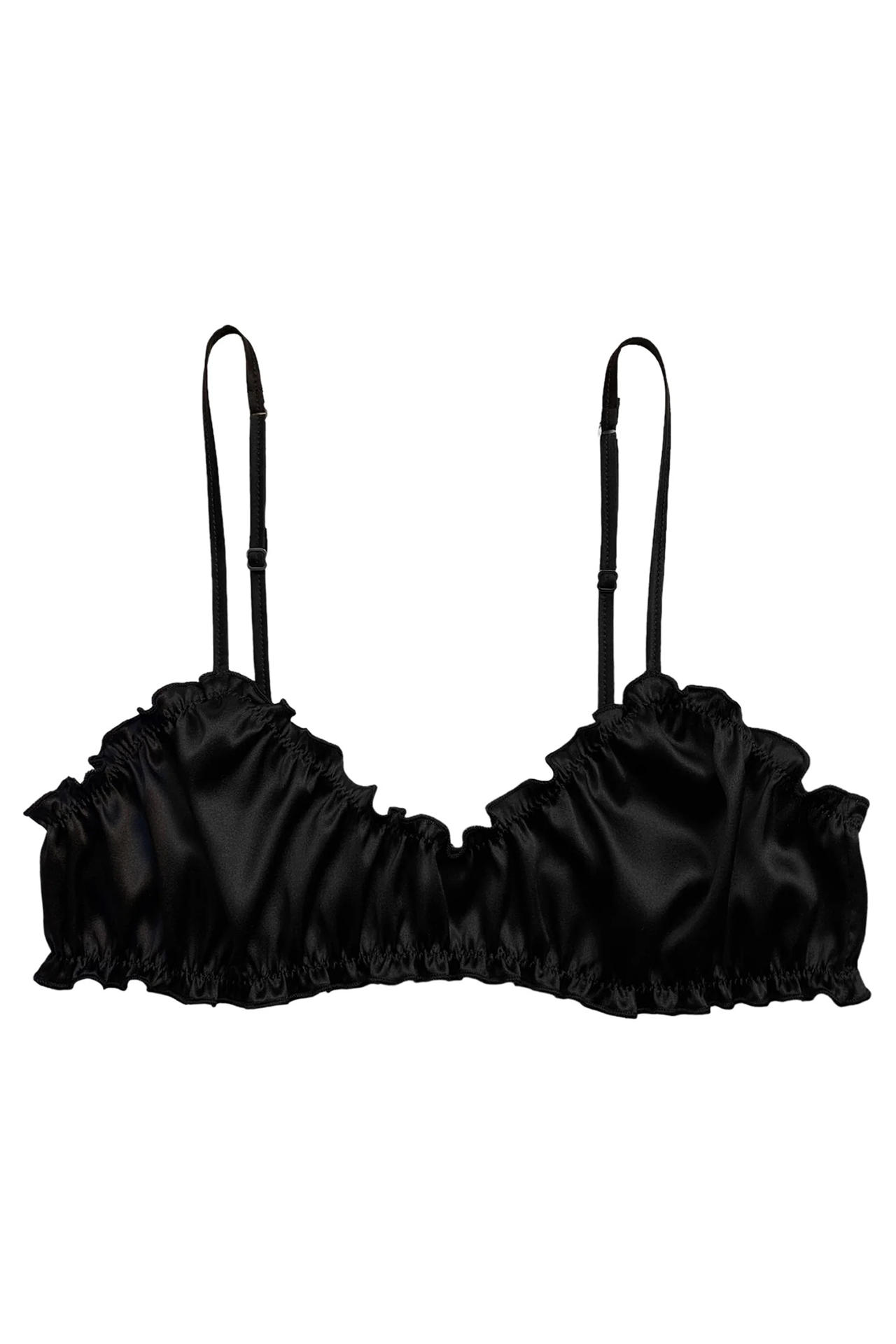 The satin silk frilled bra from the Eterna collection features delicate frills and thin silk adjustable straps. This bra will feel soft and comfortable and it offers light support without marking your skin. Handmade with Italian high quality silk, its timeless look makes it ideal both for everyday wear and for events to remember.