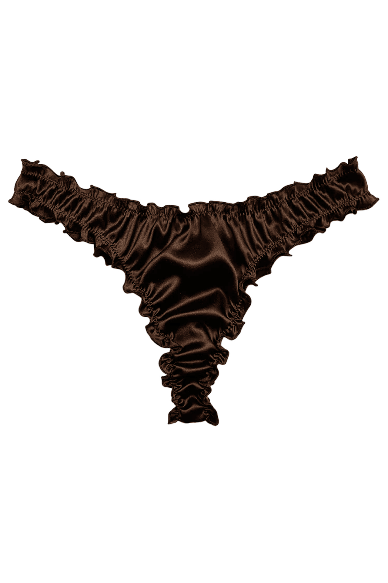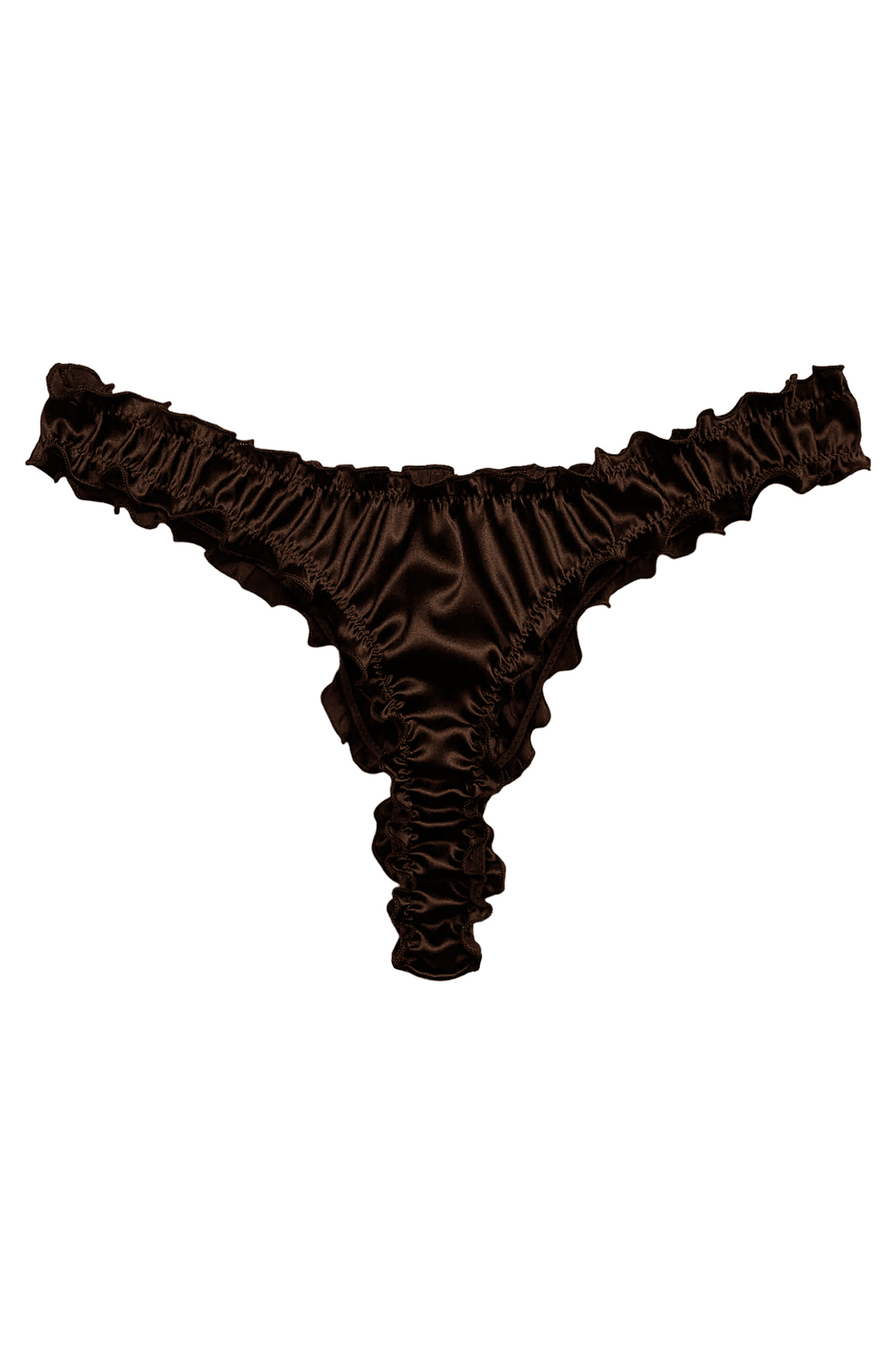 The mid rise satin silk frilled thong from the Eterna collection is the piece that started it all. It features delicate frills and it combines comfort with a timeless and dreamy look. Handmade with Italian high quality silk, this thong will feel like a gentle caress when on and it’s ideal both for everyday wear and for events to remember.