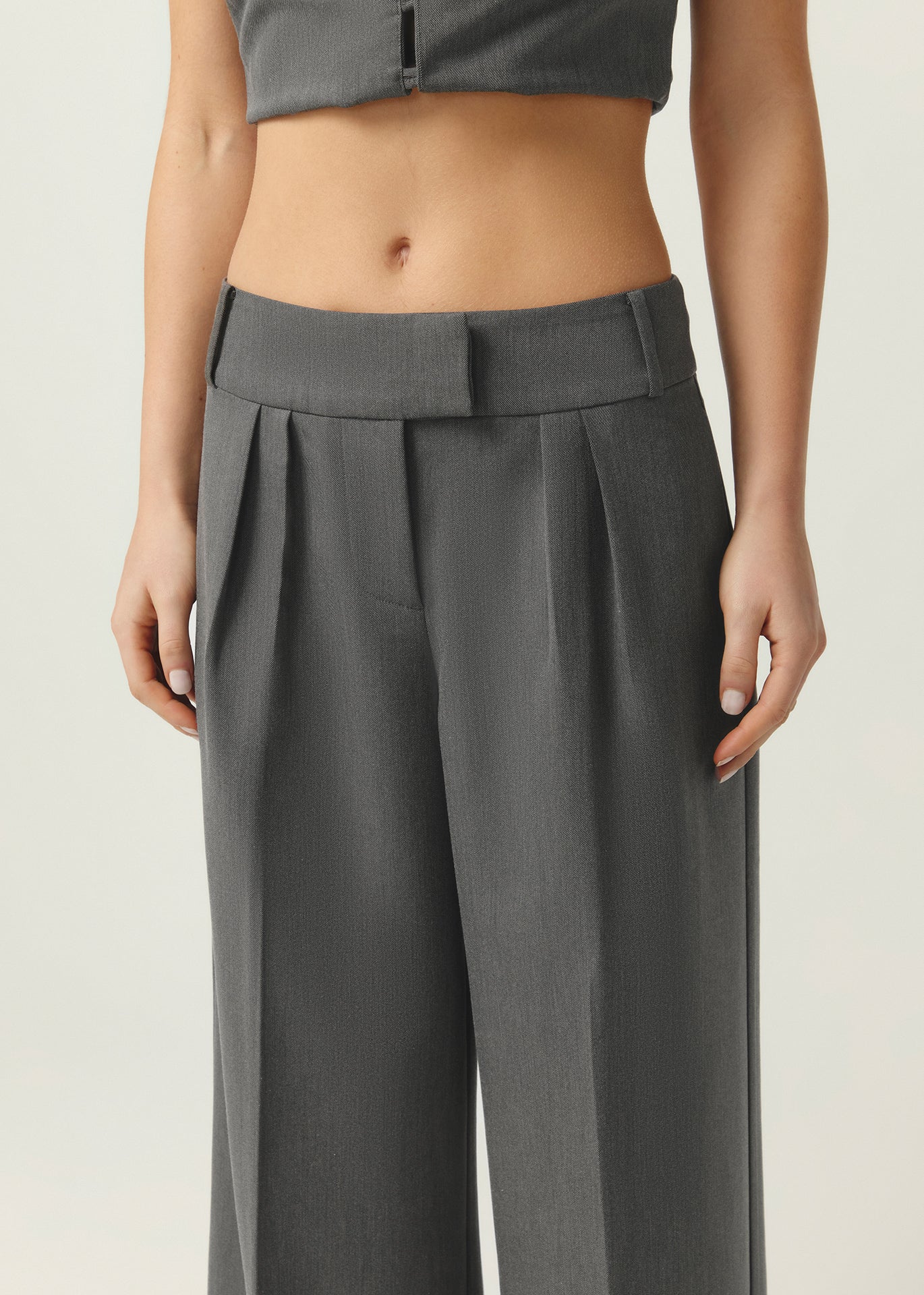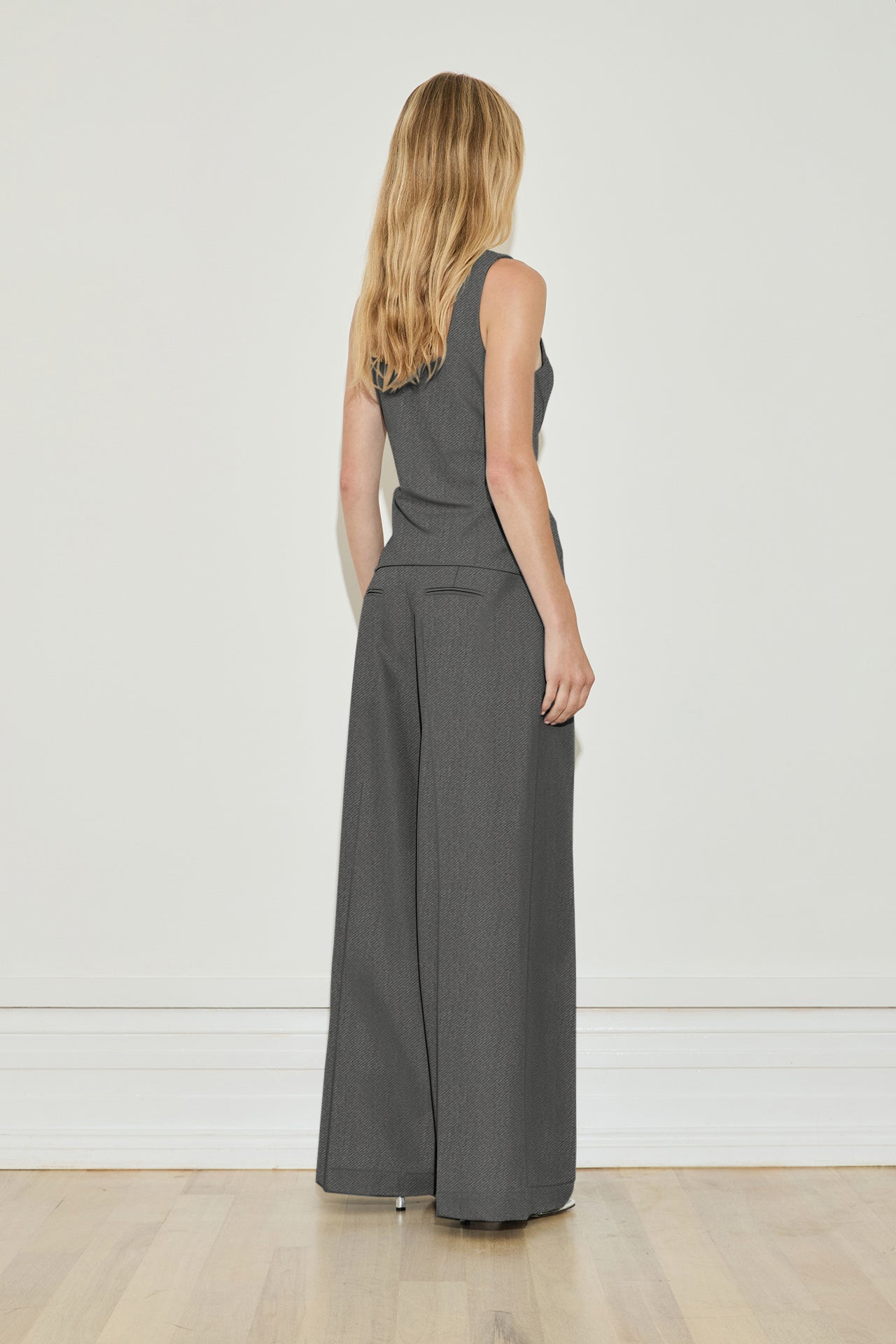 Elevate your wardrobe with our Wide Leg Suit Pant, crafted from premium suiting fabric. The wide waistband with belt loops offers a flattering fit and option to accessorise with your favourite belt. With a relaxed wide-leg design, these pants create a sophisticated look, perfect when paired with the MAISON ESSENTIELE Tailored Vest or our Baby Tee. Subtle dart detailing and a crisp hem add style and functionality, making them a must-have for any look.