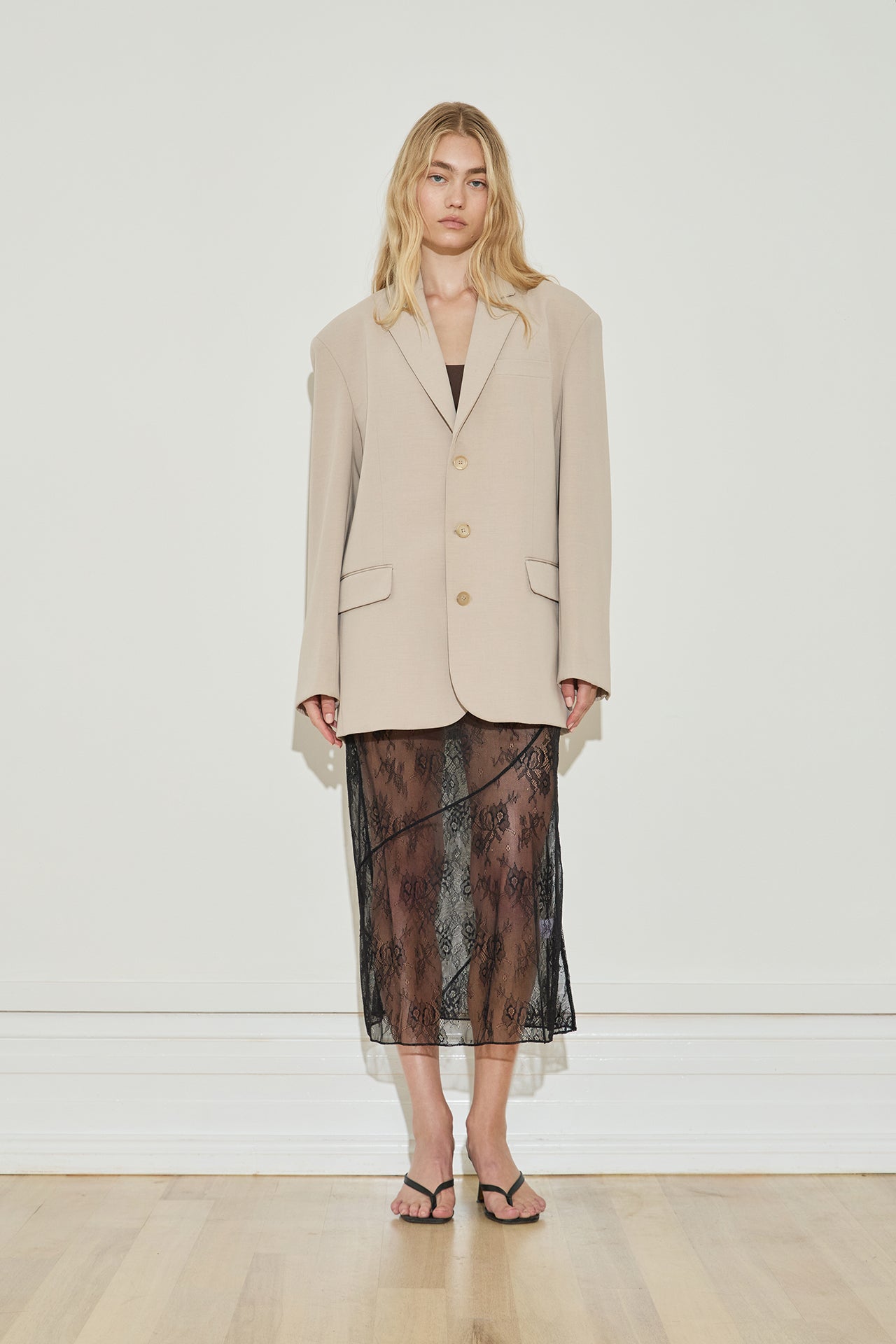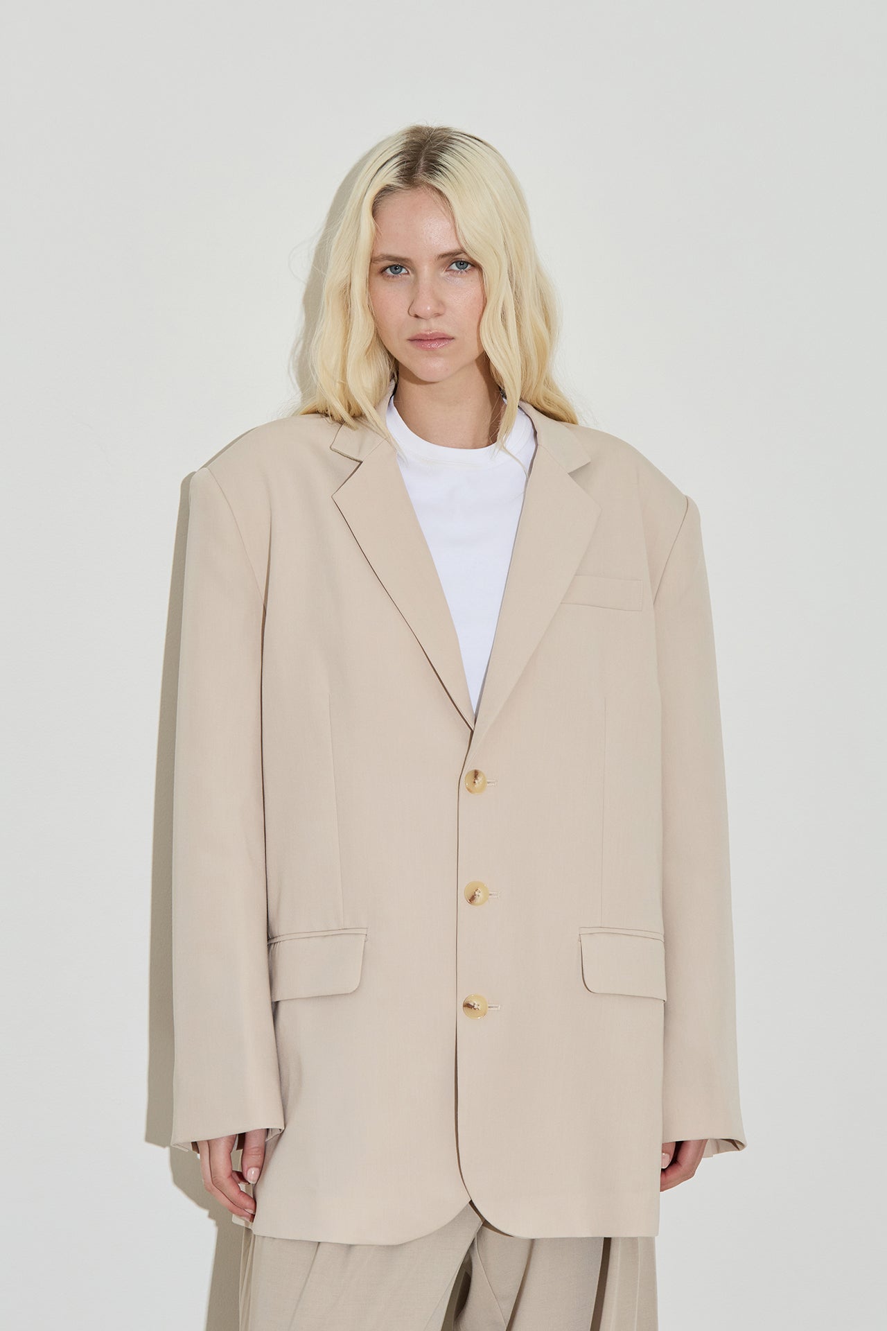 - Oversized silhouette with padded shoulders