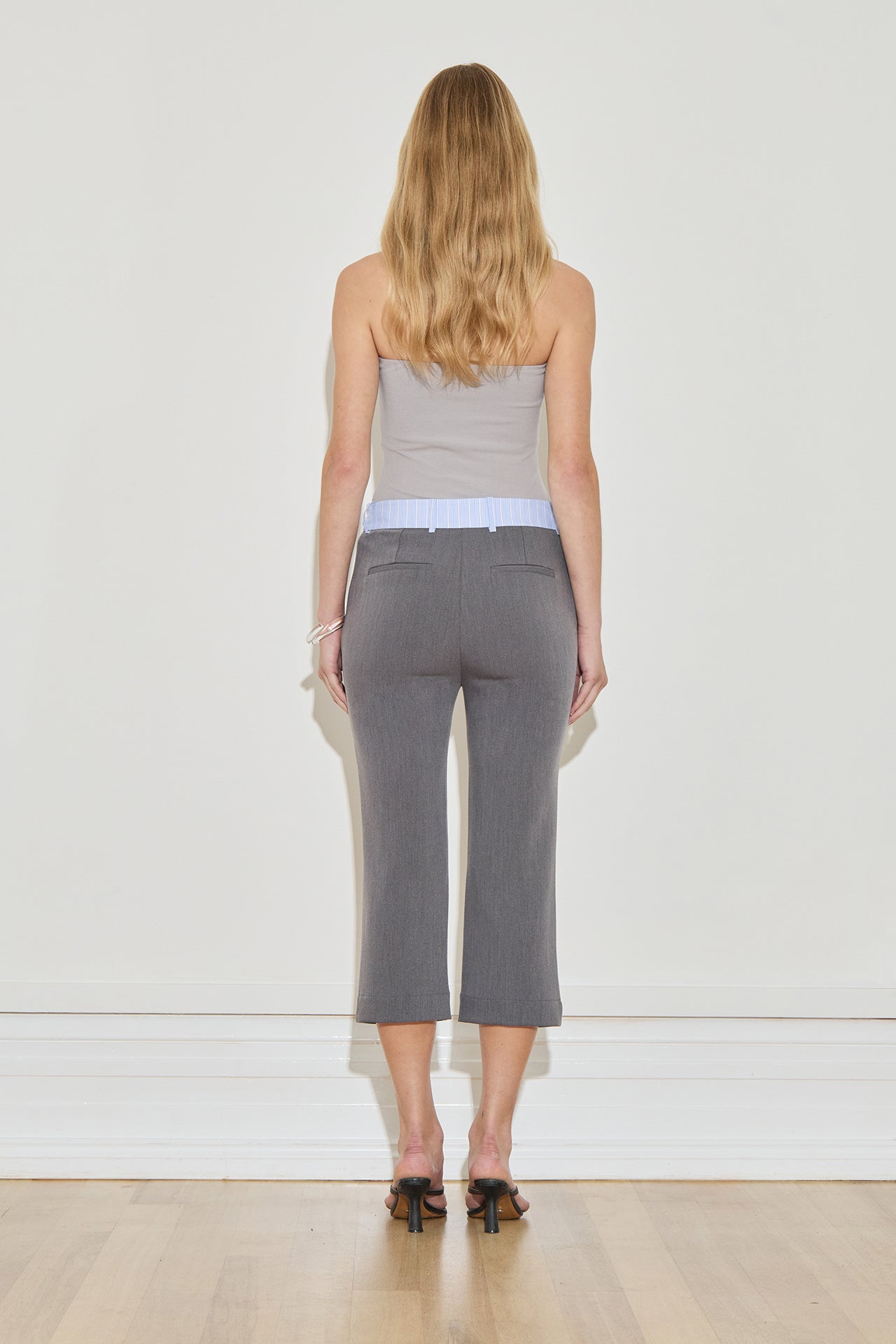 The Tailored Capri Pant is a refined essential with a modern twist. This pant features a signature MAISON ESSENTIELE cotton stripe waistband for contrast. With a classic tailored finish, belt loops, and welt-style back pockets, it blends sharp structure with everyday versatility.