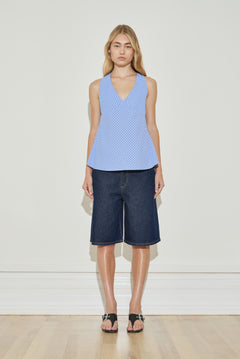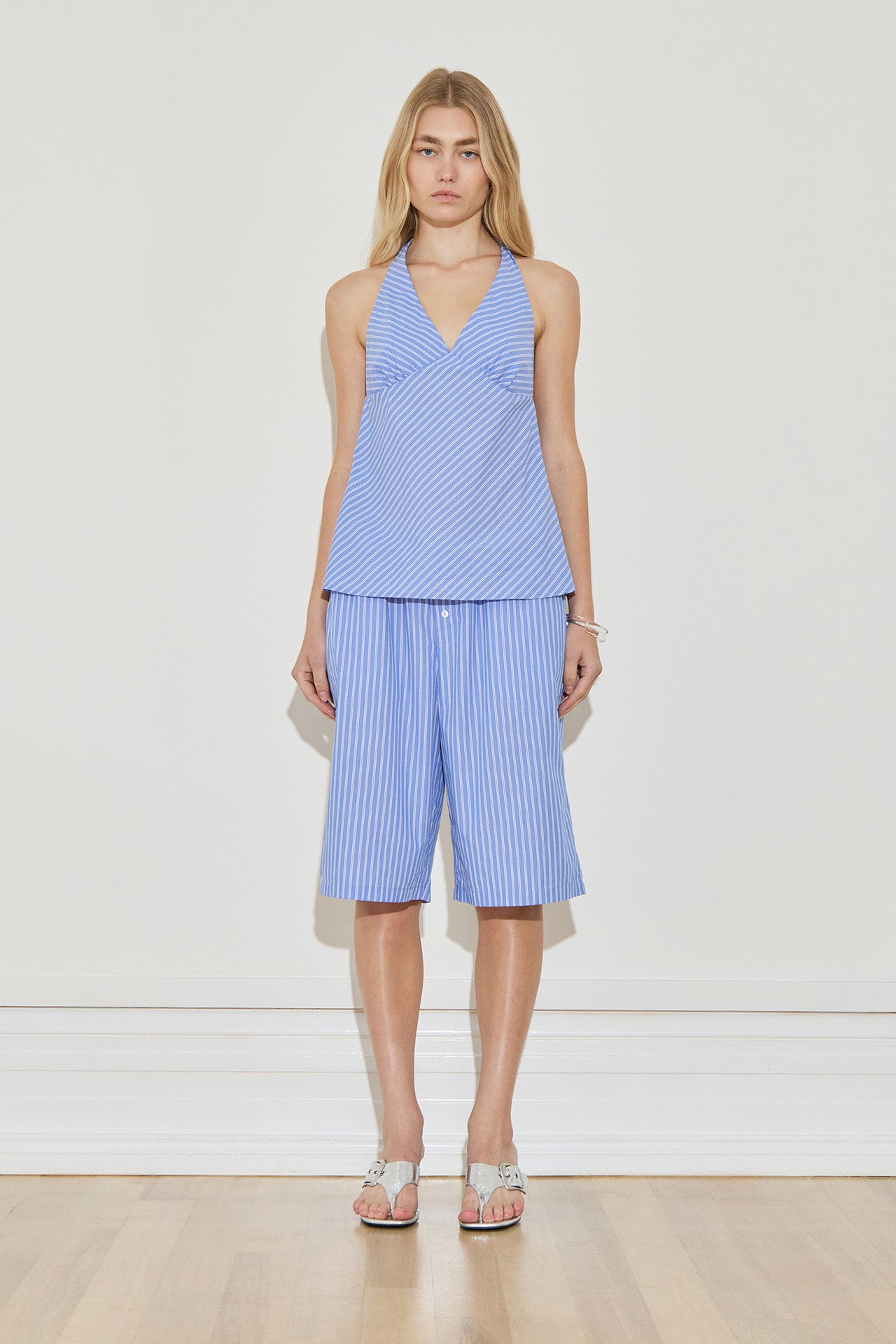 The Longline Cotton Short in Stripe is designed for effortless, everyday wear. Cut in 100% cotton, this relaxed silhouette features a longer line leg for a flattering fit, perfect for warm-weather styling.