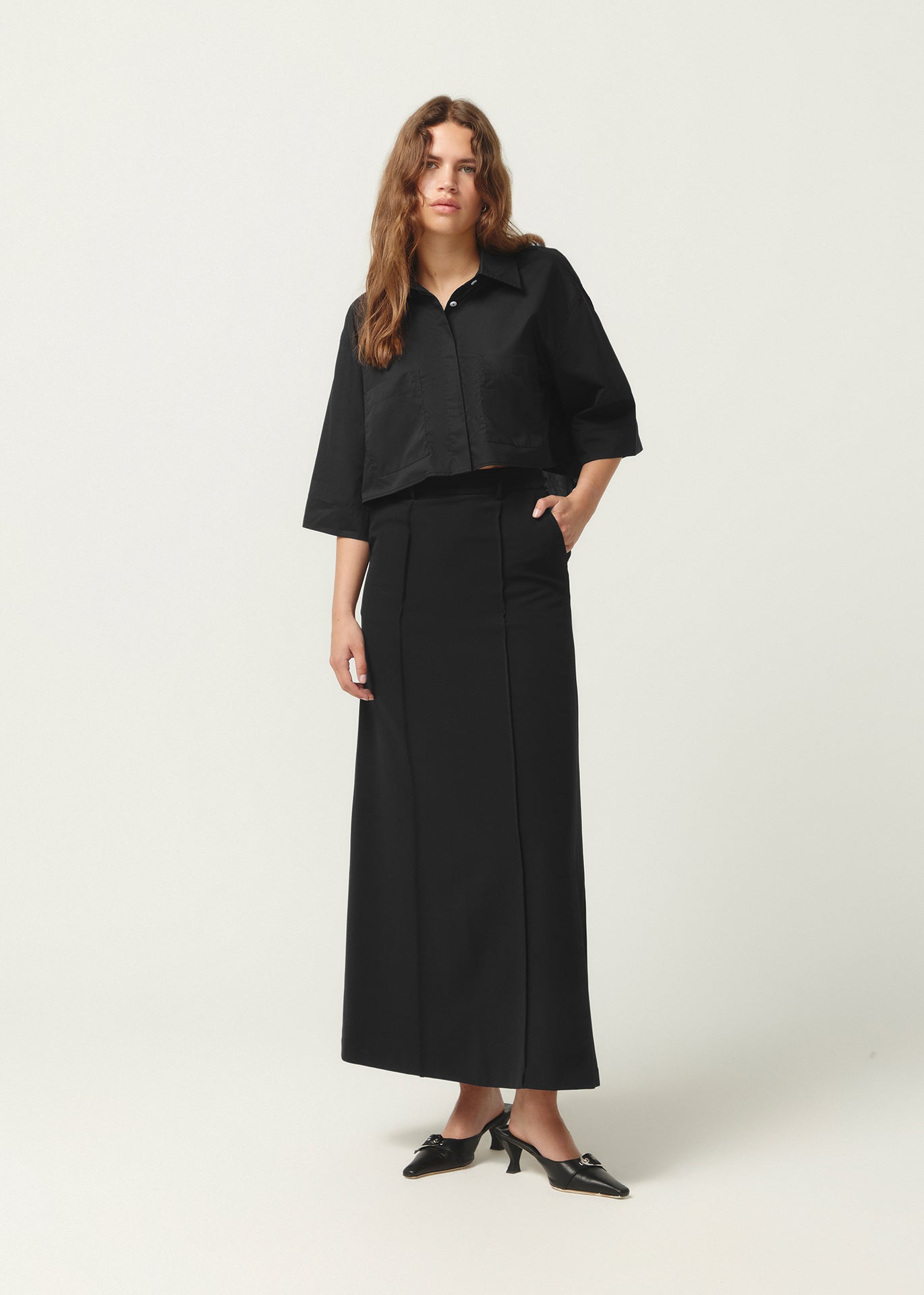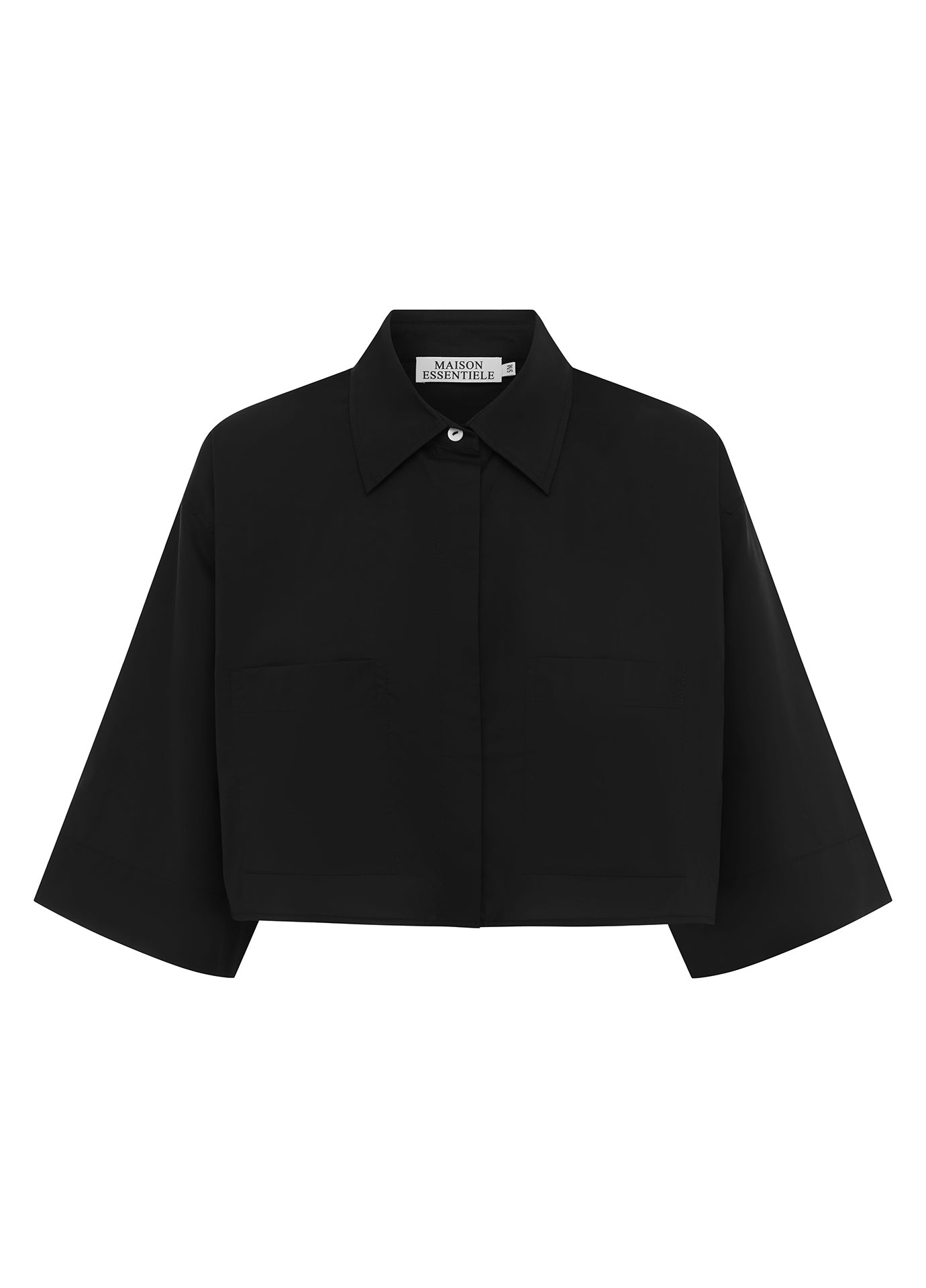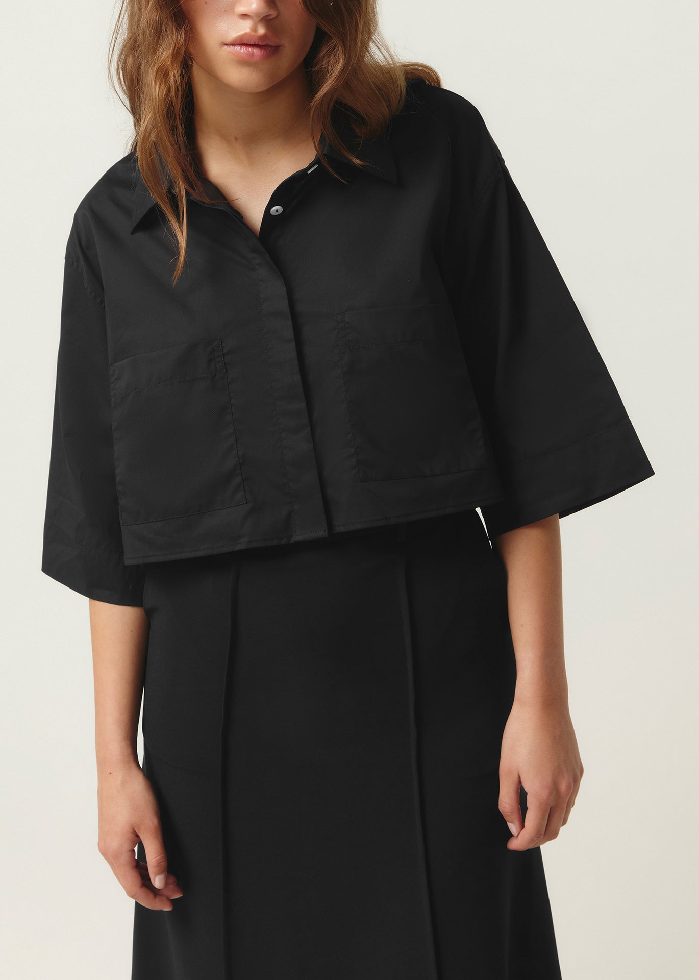 The Cropped Weekender Shirt: our easy wearing boxy shirt with oversized, cropped silhouette, breast pockets and embroidery on back neck.