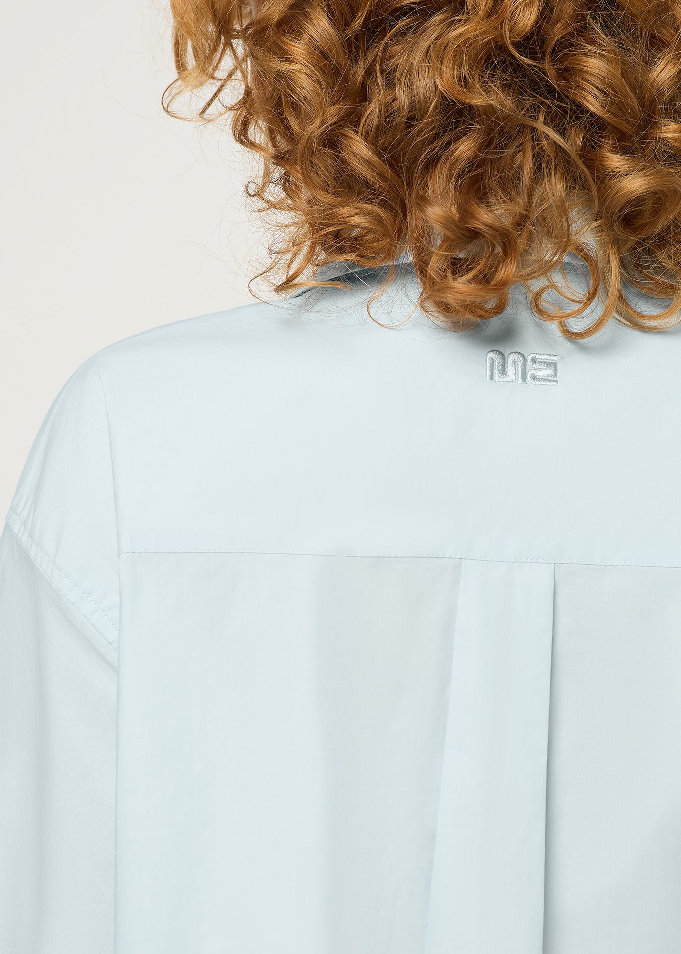 The Cropped Weekender Shirt: our easy wearing boxy shirt with oversized, cropped silhouette, breast pockets and embroidery on back neck.