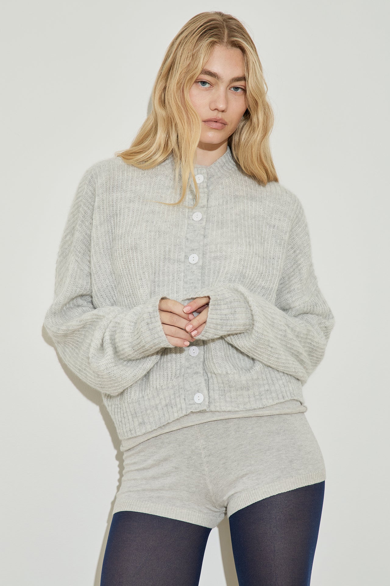 Introducing the Knit Mini Short, a soft staple designed for ease. Spun from a lightweight cotton-cashmere blend, this short features a ribbed waistband and fine-gauge knit that gently hugs the body.