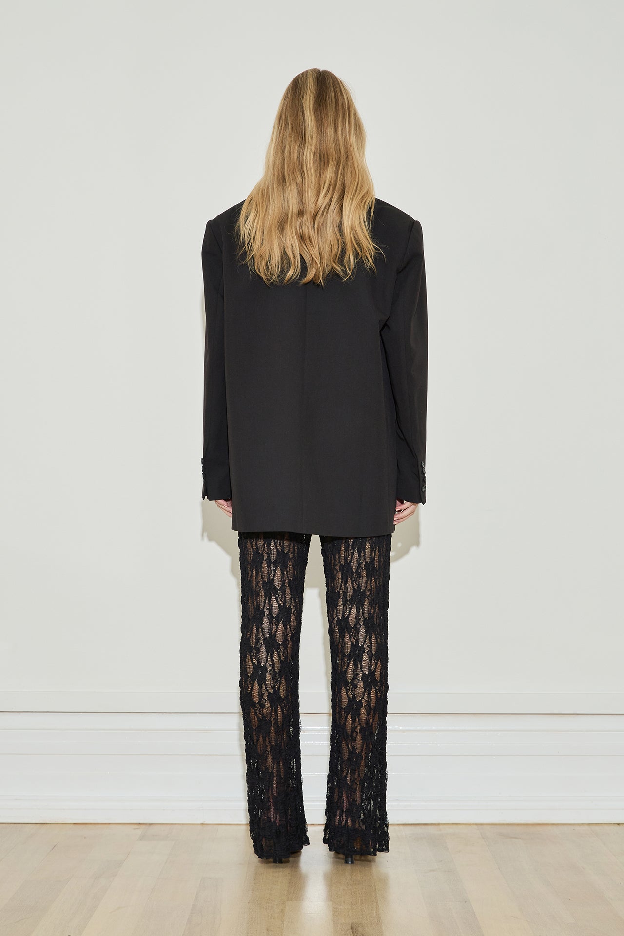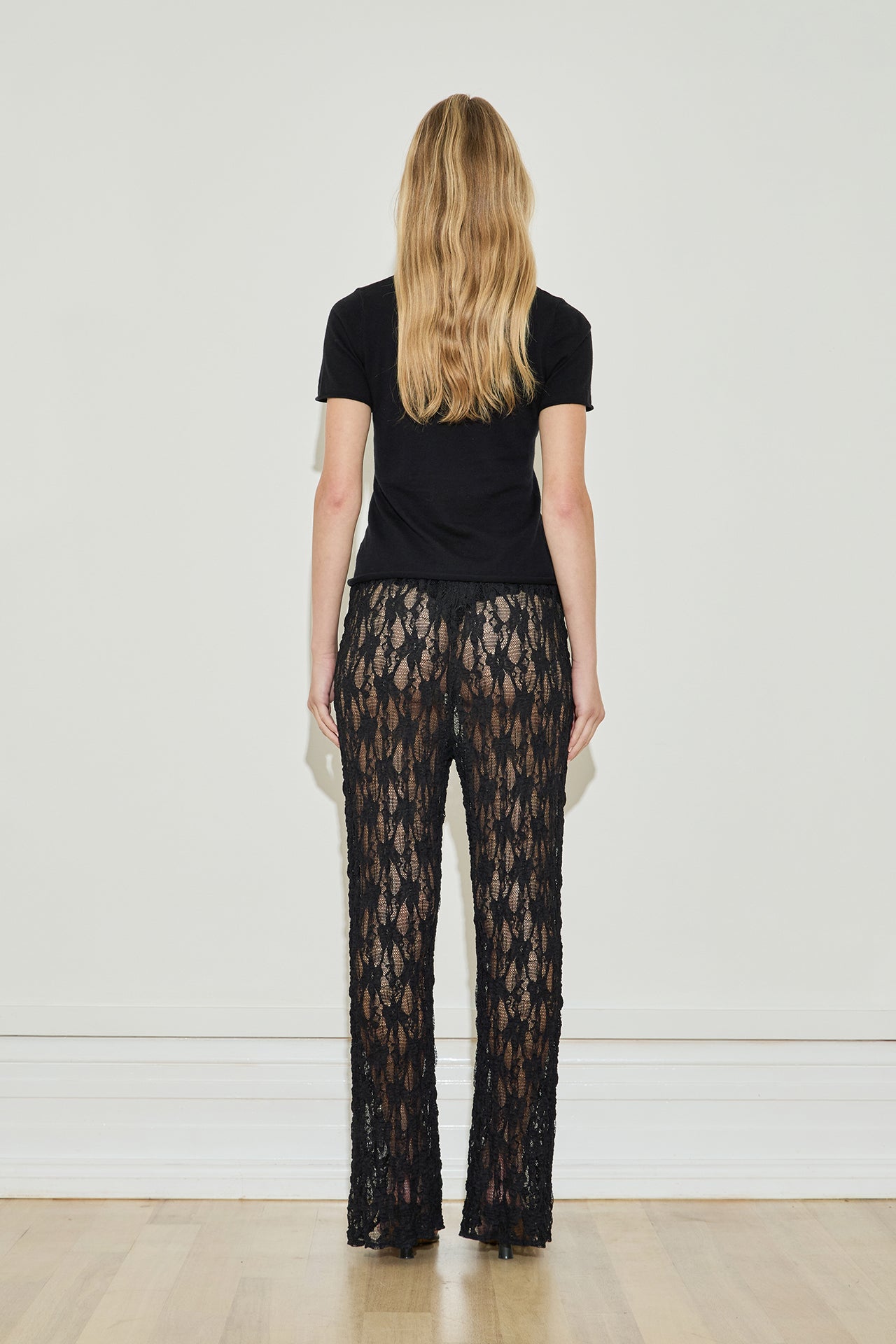 An update to our Lace Pant, now crafted in a Seersucker Lace. A straight leg cut and designed to be worn mid waisted. With a touch of stretch for a perfect fit, and an elastic waistband for added comfort.