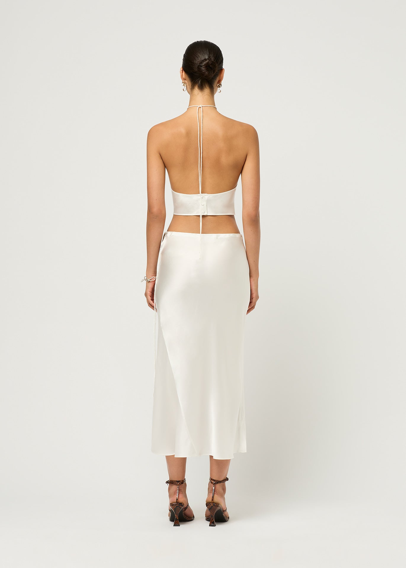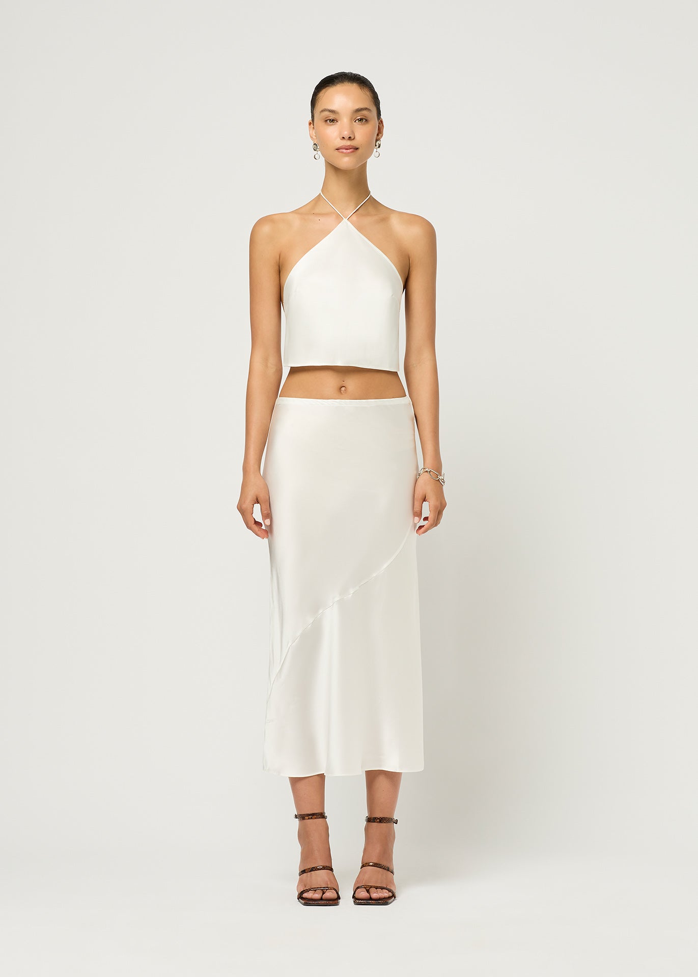 The Silk Skirt - delicate, bias cut and can effortlessly be slipped on. Wear it lower on the hips for a hint of skin, or cinch it higher with the drawstring. Seams panel the skirt creating thoughtful details.