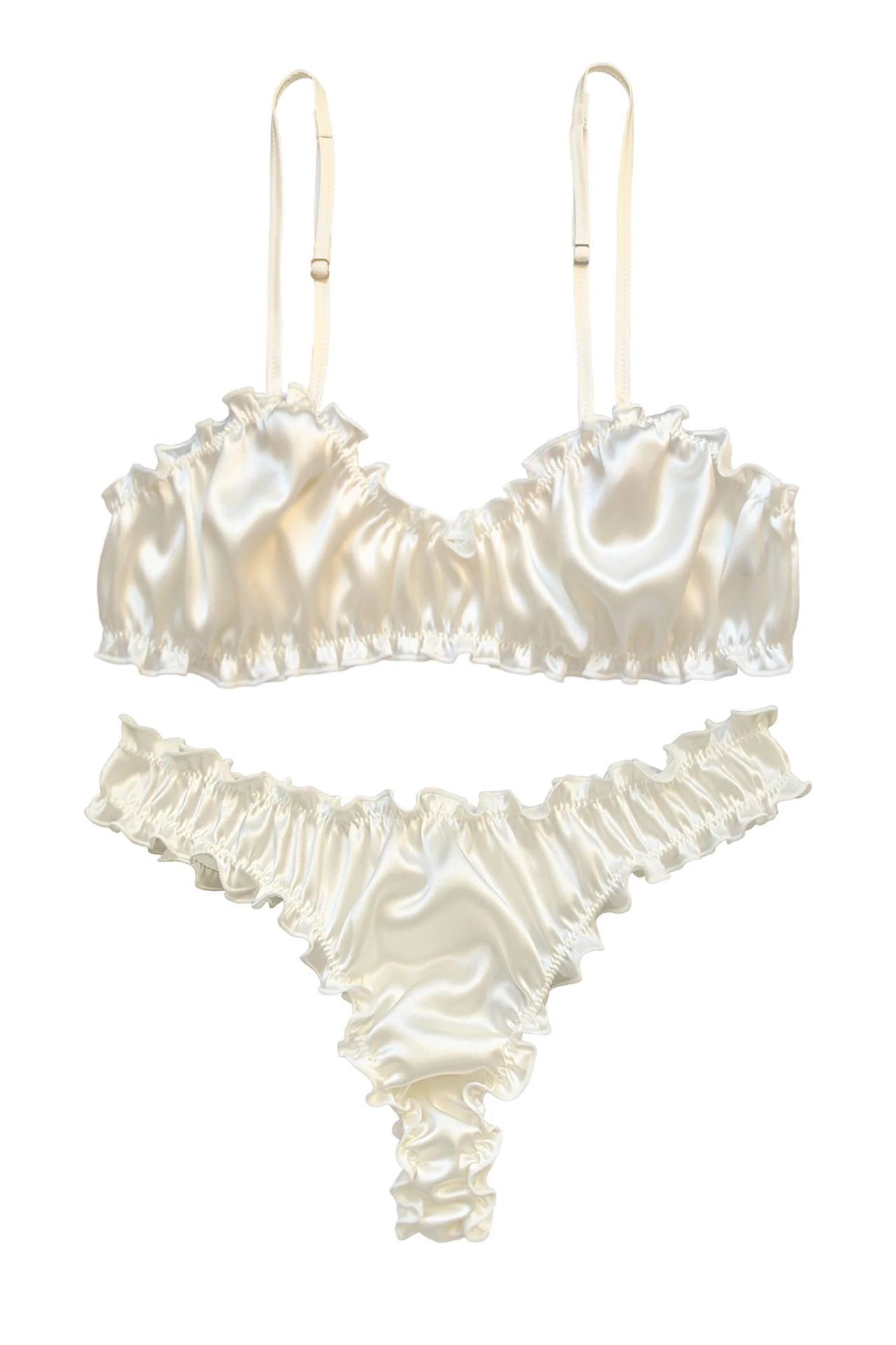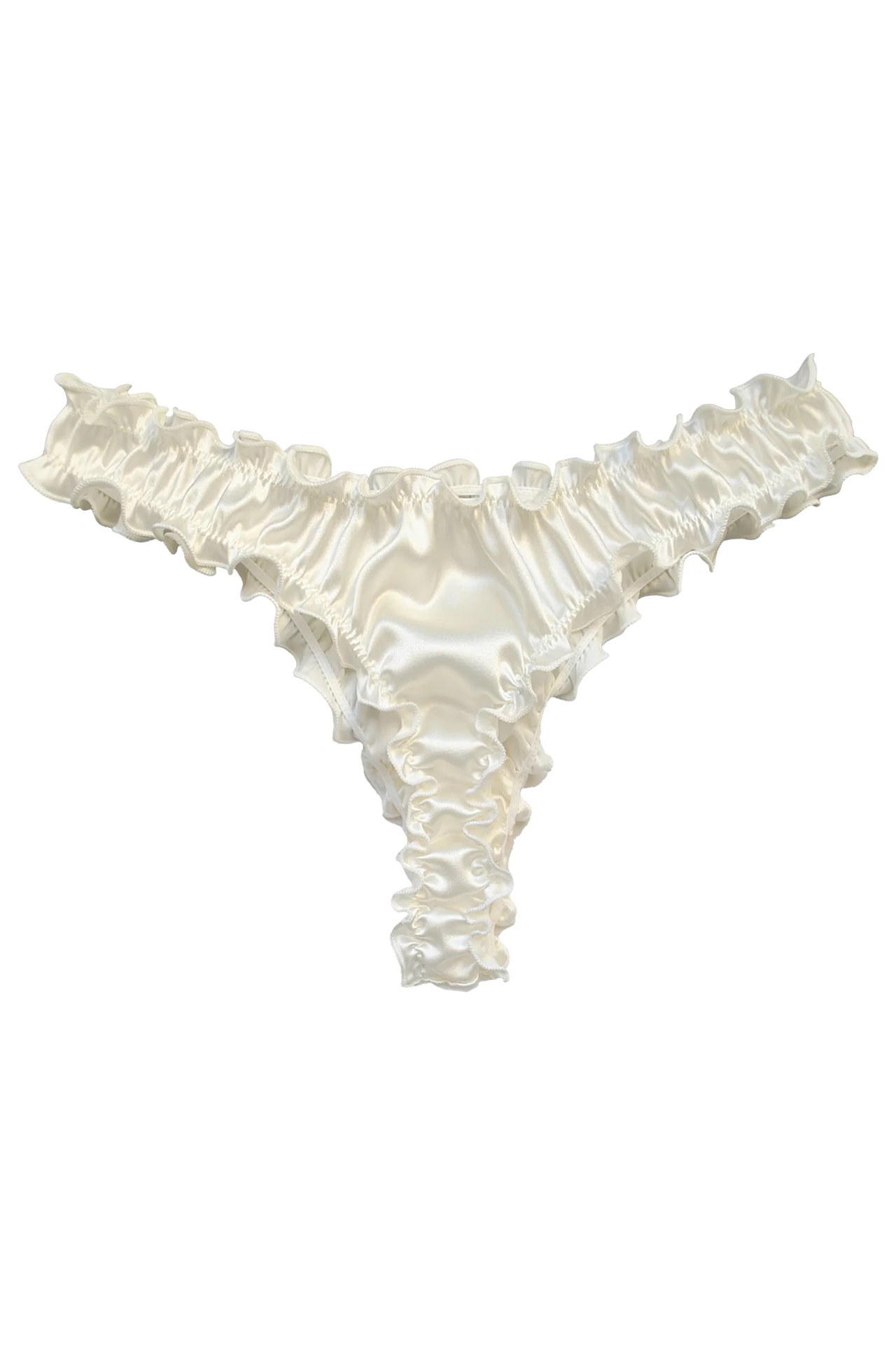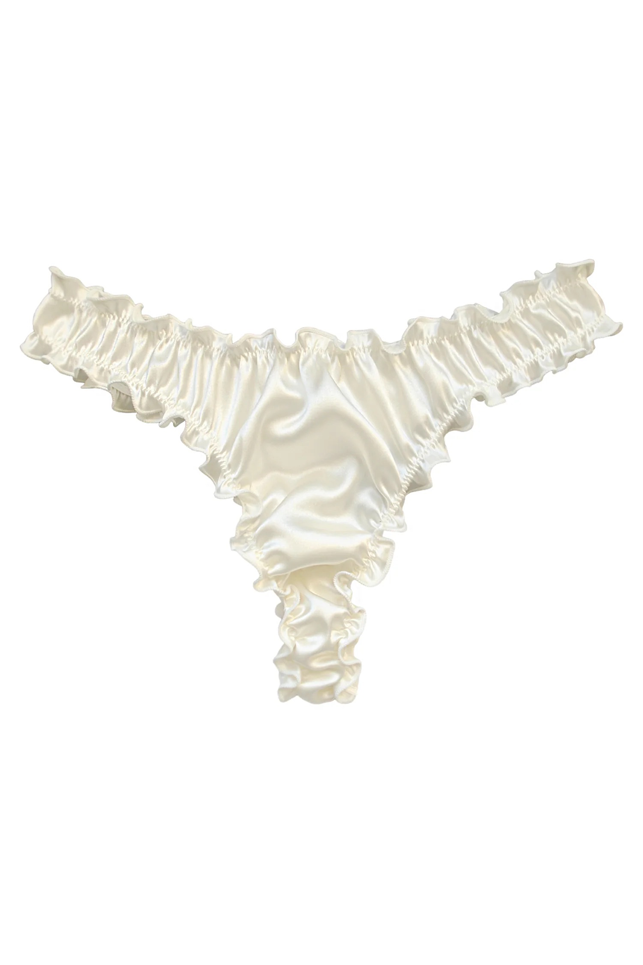 The mid rise satin silk frilled thong from the Eterna collection is the piece that started it all. It features delicate frills and it combines comfort with a timeless and dreamy look. Handmade with Italian high quality silk, this thong will feel like a gentle caress when on and it’s ideal both for everyday wear and for events to remember.