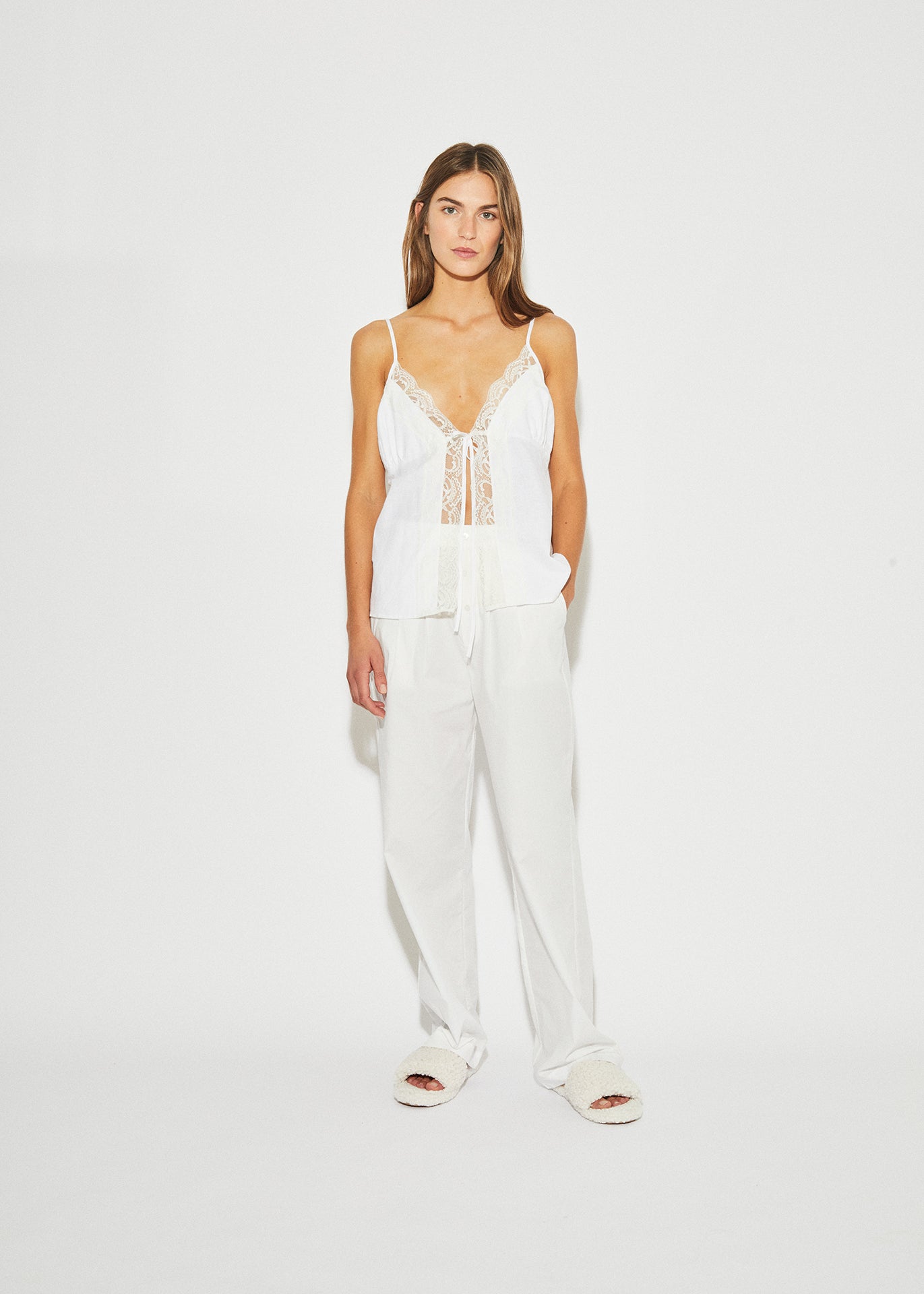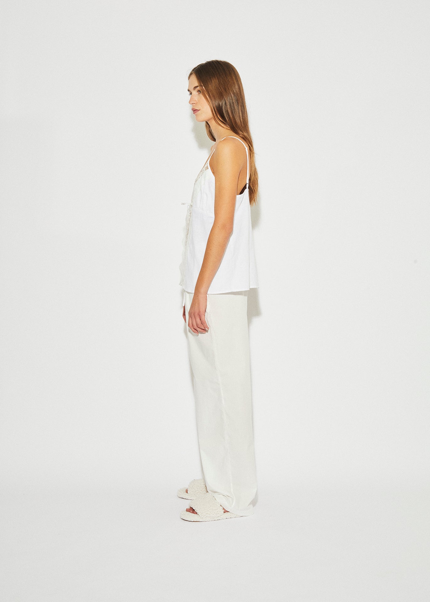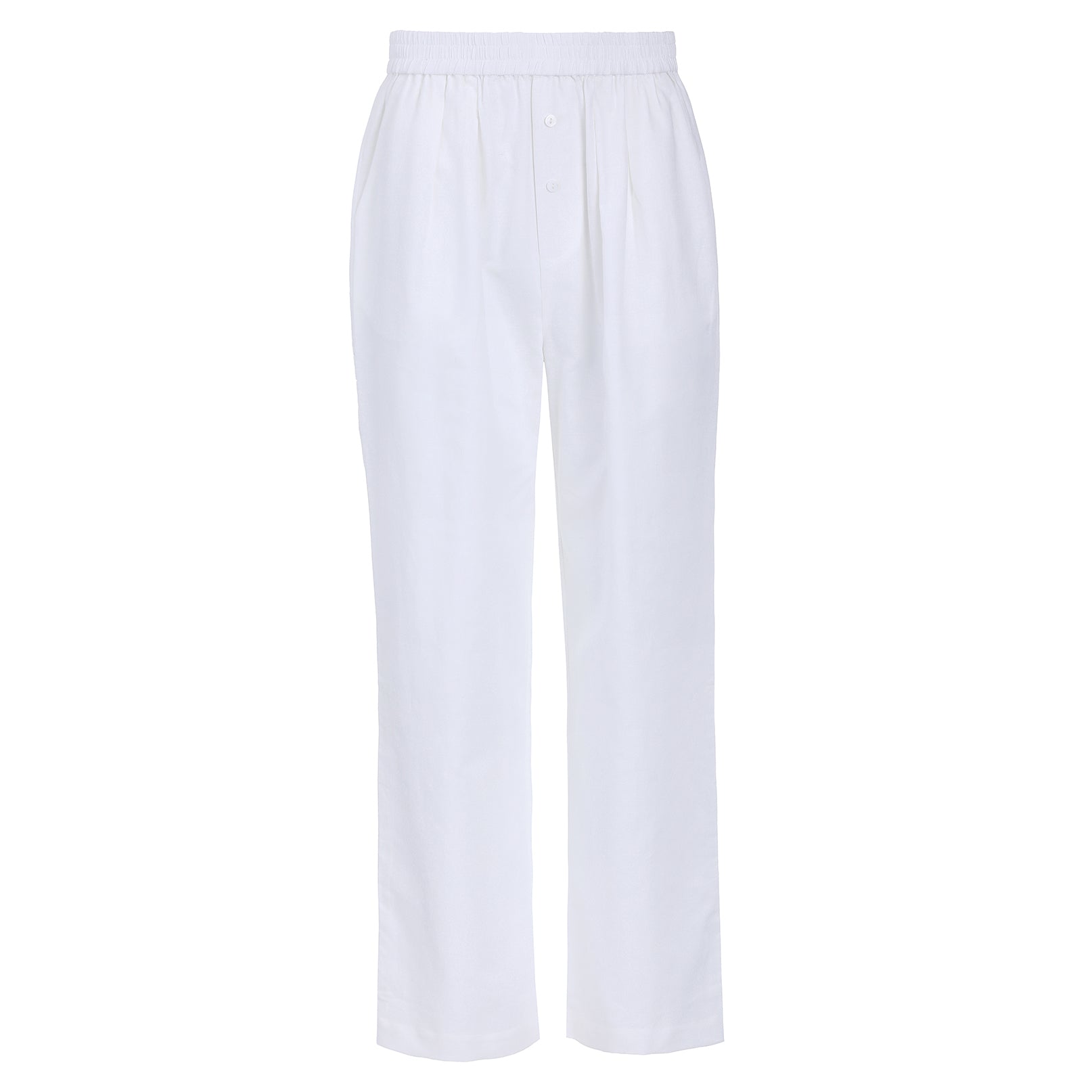Relaxed pants with a wide elasticated waistband, mock fly front, and button stand. Their simplicity offers versatile styling, perfect for resort wear with the MAISON ESSENTIELE Resort Shirt slides or sandals.