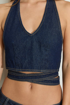 Elevate your wardrobe with the Denim Wrap Mini Skirt, a timeless piece that blends classic style with the modern cool girl. Crafted in our Deep Indigo Denim, this skirt features a flattering wrap design with a wide waistband. Style with our new Denim Halter Top for a chic, versatile set.