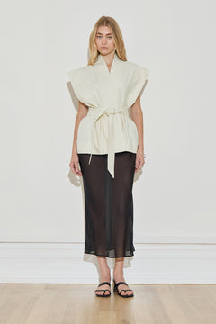 An iteration of our best-selling Kimono, the Kimono Wrap Skirt is a versatile wardrobe staple. Designed with the same considered ease and structure, this skirt features a flattering wrap detail and adjustable waist tie for a personalised fit. Crafted in 100% cotton canvas, it’s ideal for elevated everyday wear — whether styled with a tank, over swimwear, or paired with the coordinating Kimono Top.