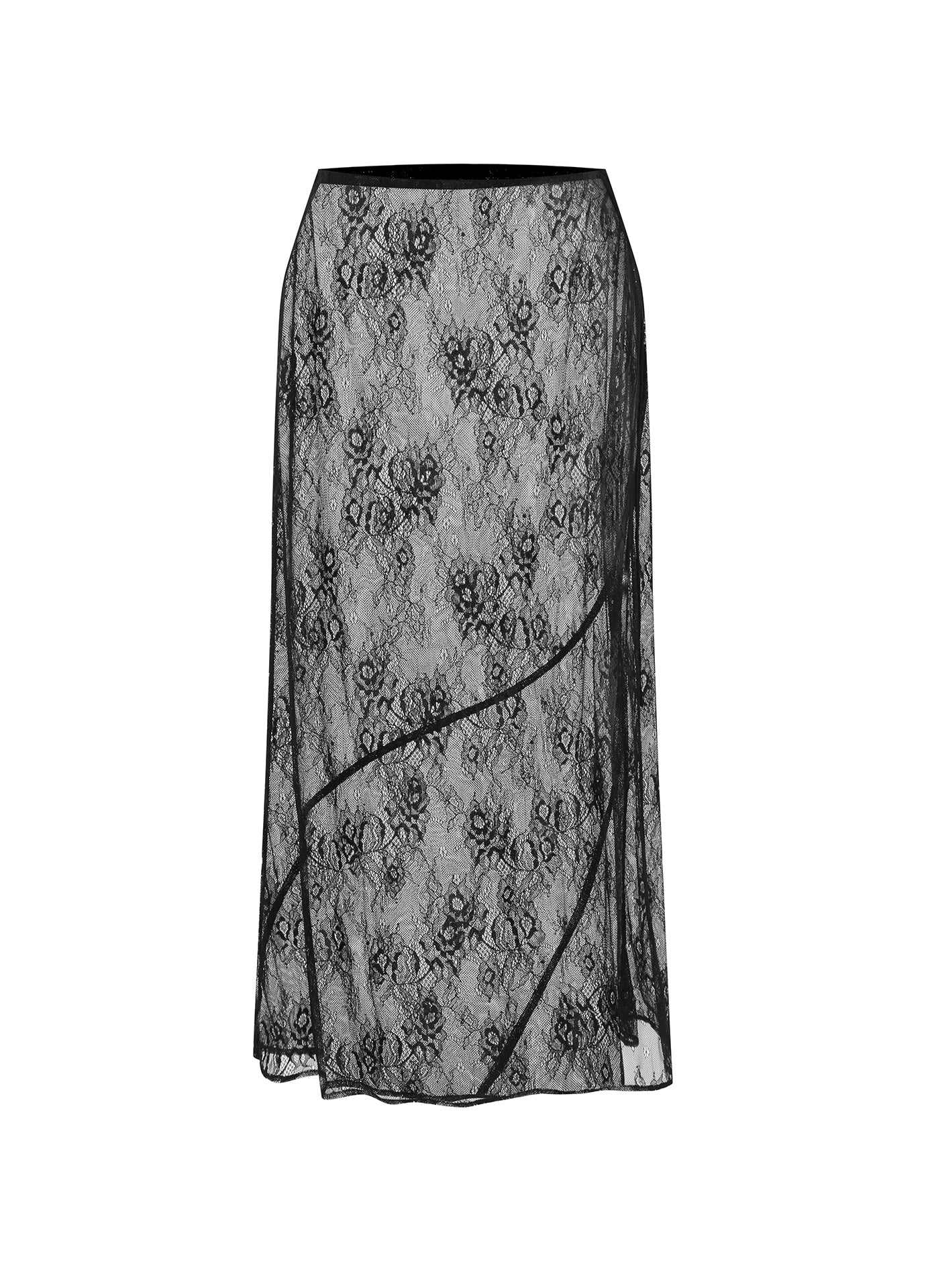 The Lace Skirt - delicate, chic and can effortlessly be slipped on. Wear it lower on the hips for a hint of skin, or cinch it higher with the drawstring. Seams panel the skirt creating thoughtful details.