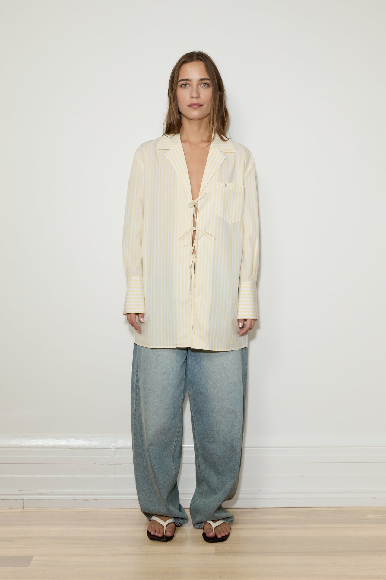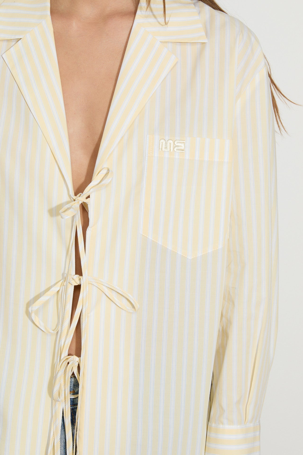 Our Oversized Tie Up Shirt features a classic shirting silhouette in a relaxed fit, with tie up details at the centre front for an elevated look.