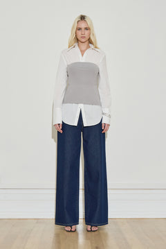 The Tailored Capri Pant is a refined essential with a modern twist. This pant features a signature MAISON ESSENTIELE cotton stripe waistband for contrast. With a classic tailored finish, belt loops, and welt-style back pockets, it blends sharp structure with everyday versatility.